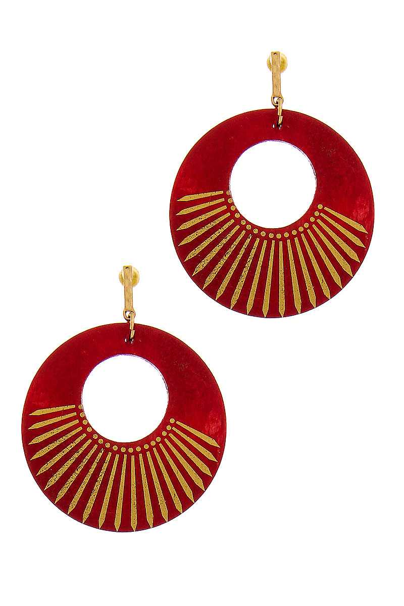 Imported FASHION WOODEN CIRCLE DROP EARRING Ivory.Black.Mustard.Red.Teal FBJ