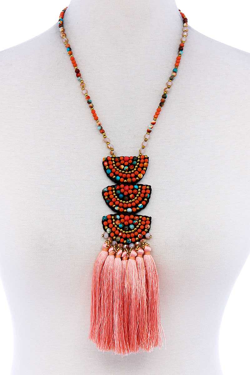 DESIGNER MULTI TASSEL AND BEADED NECKLACE