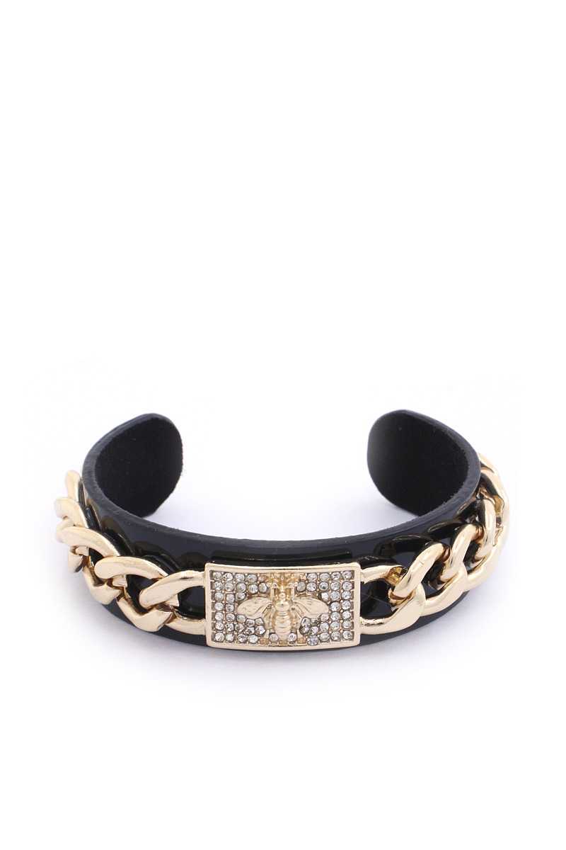 Imported BEE RHINESTONE CUBAN LINK CUFF BRACELET White.Black FBJ